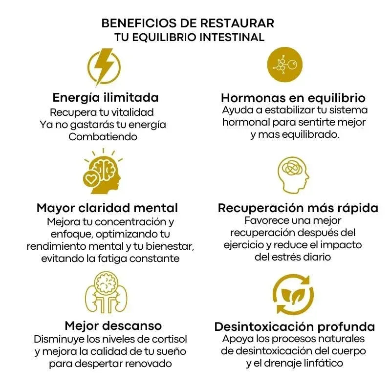 Restaura la salud intestinal: Promueve un intestino equilibrado para un bienestar general.