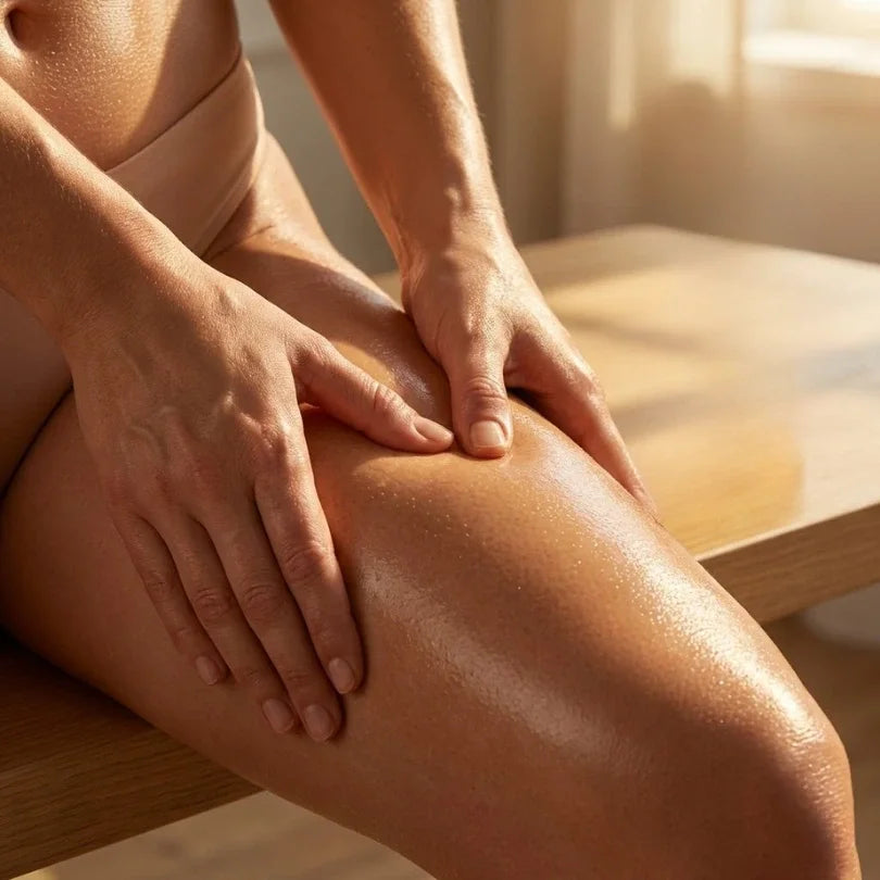 La imagen habla sola. Mira cómo la hidratación profunda del Colágeno transforma una superficie apagada y con hoyuelos en una piel luminosa, tensa y visiblemente más uniforme.