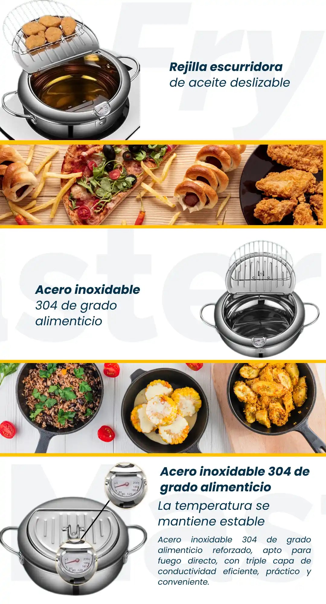 Gracias a su tamaño compacto de 20 cm, el calor se concentra, reduciendo los tiempos de cocción y asegurando frituras doradas y deliciosas en minutos.