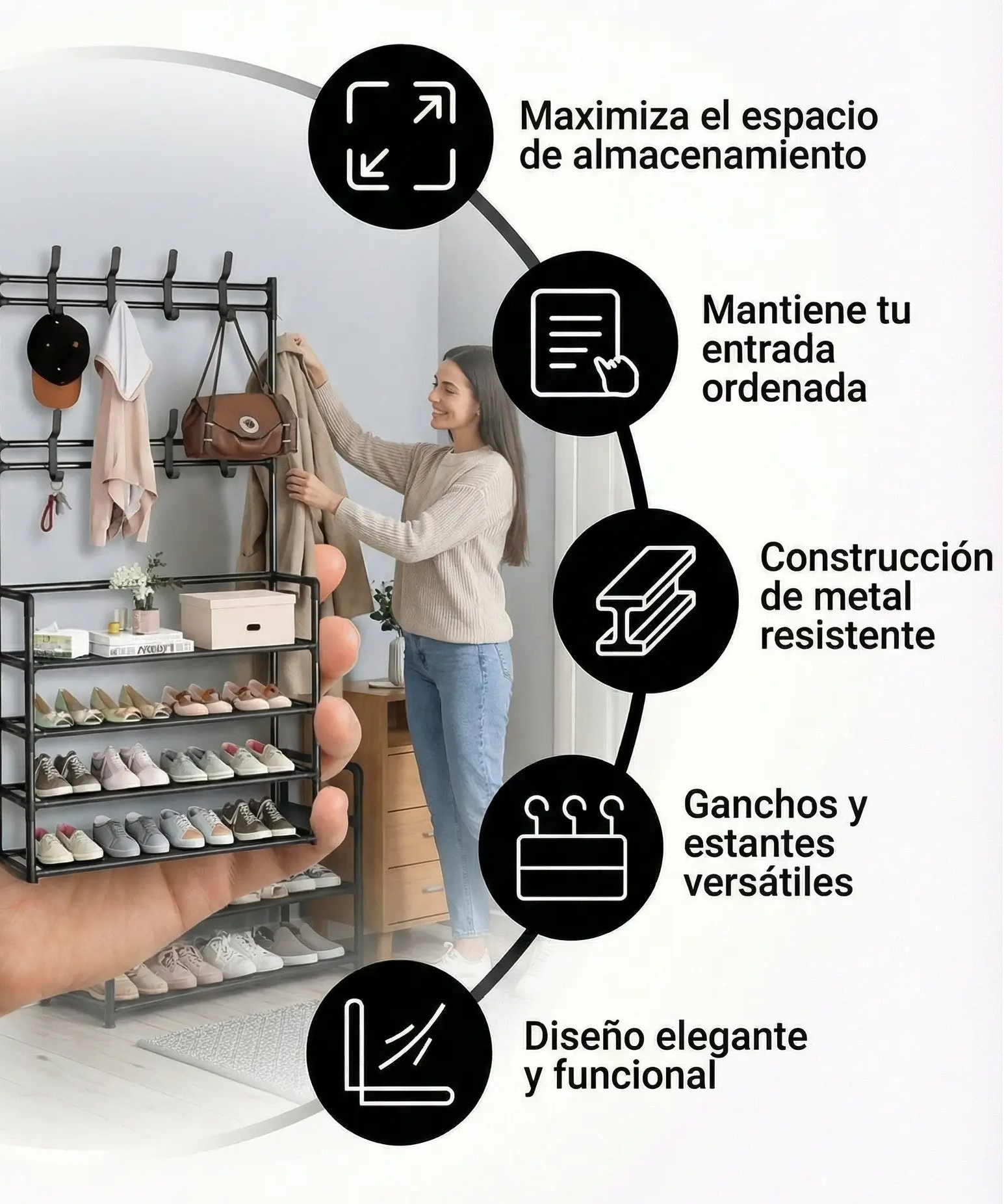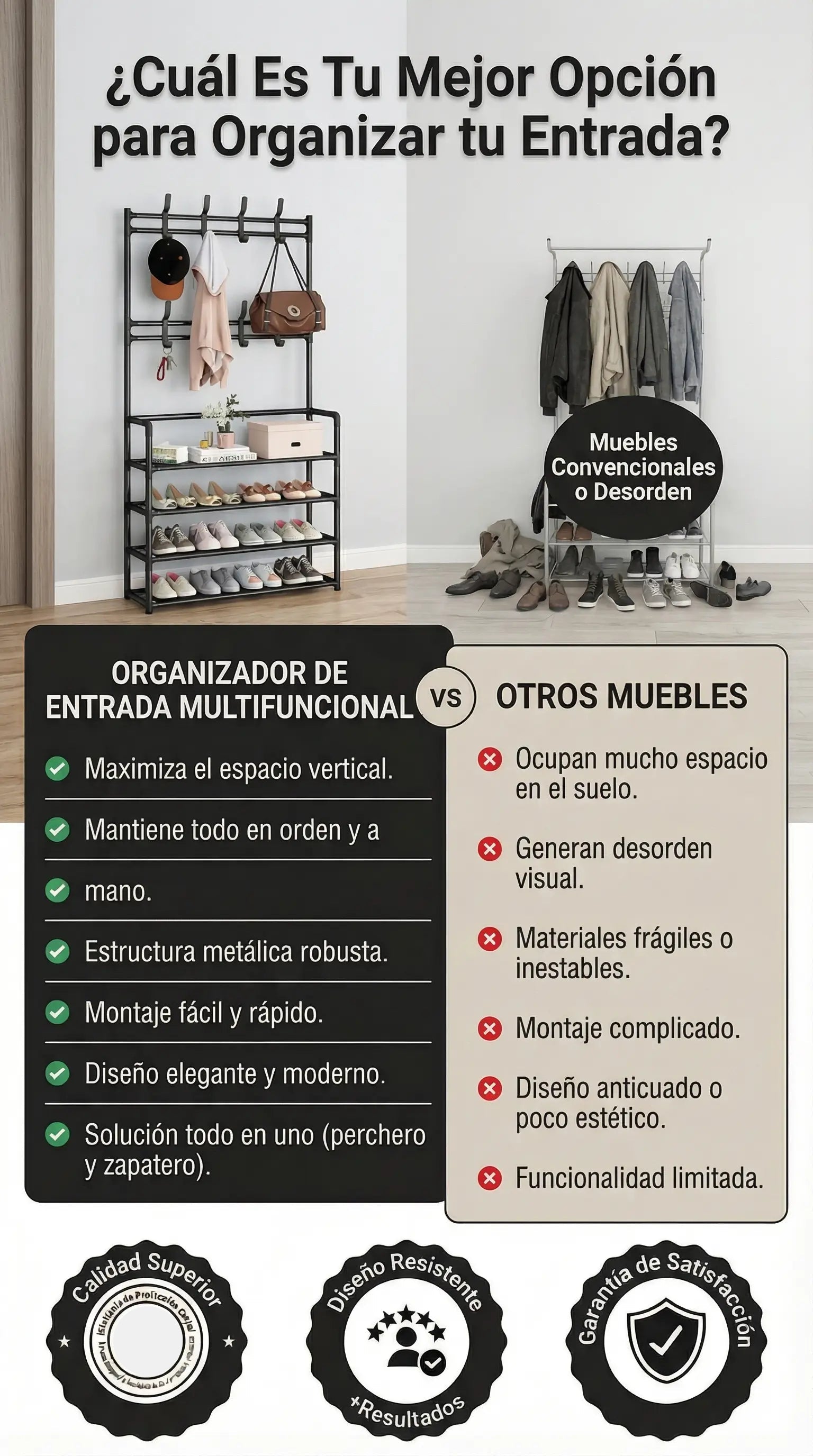 • Zapatero de 3 niveles: hecho de material metálico resistente y duradero,