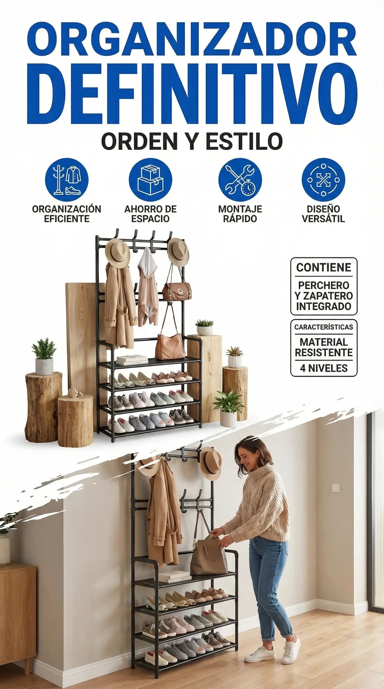 ORDENIX™ - Organizador 4 en 1 + Perchero Vertical