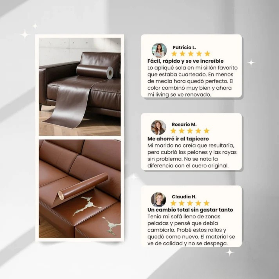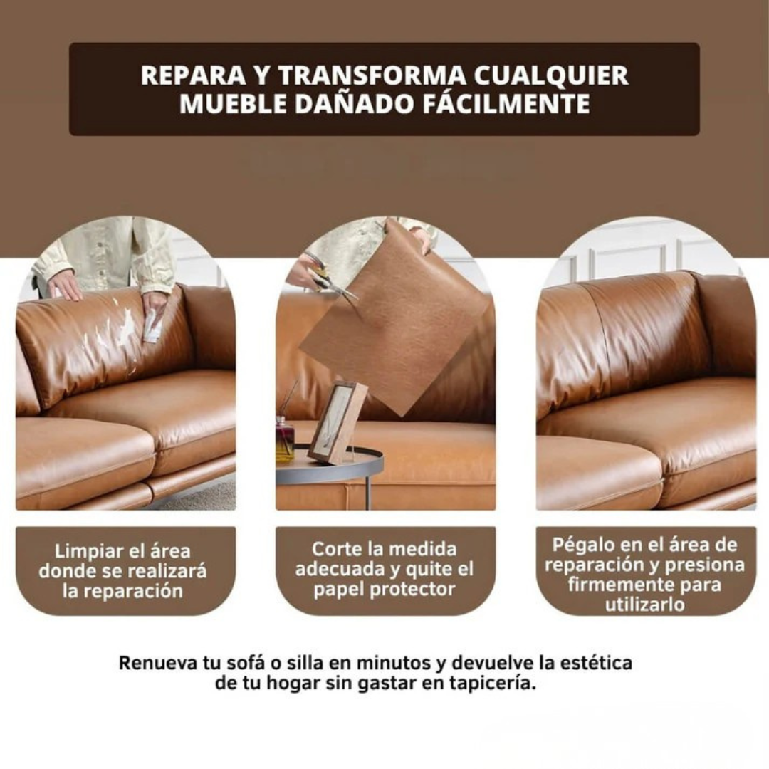 Tu sofá puede verse nuevo otra vez. Nuestro cuero autoadhesivo repara peladuras, desgaste y grietas en minutos con un acabado impecable. Una transformación instantánea que hace sentir orgullo por tu hogar.