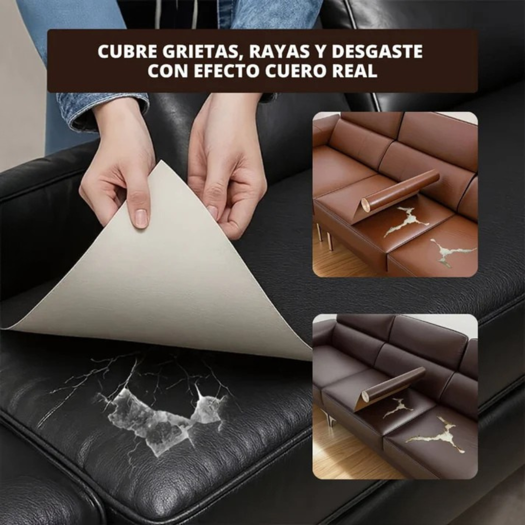 Sí. Funciona en cuerina, ecocuero, vinilo y superficies lisas sin pelusas. Solo asegúrate de limpiar bien la zona antes de aplicarlo.