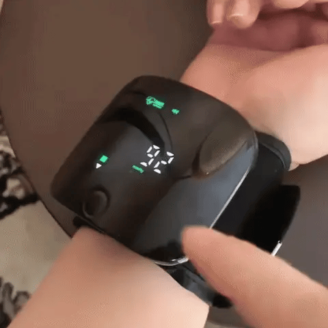 Ajusta el tensiómetro a la altura del corazón, con la palma hacia arriba, asegurando que quede firme pero cómodo.